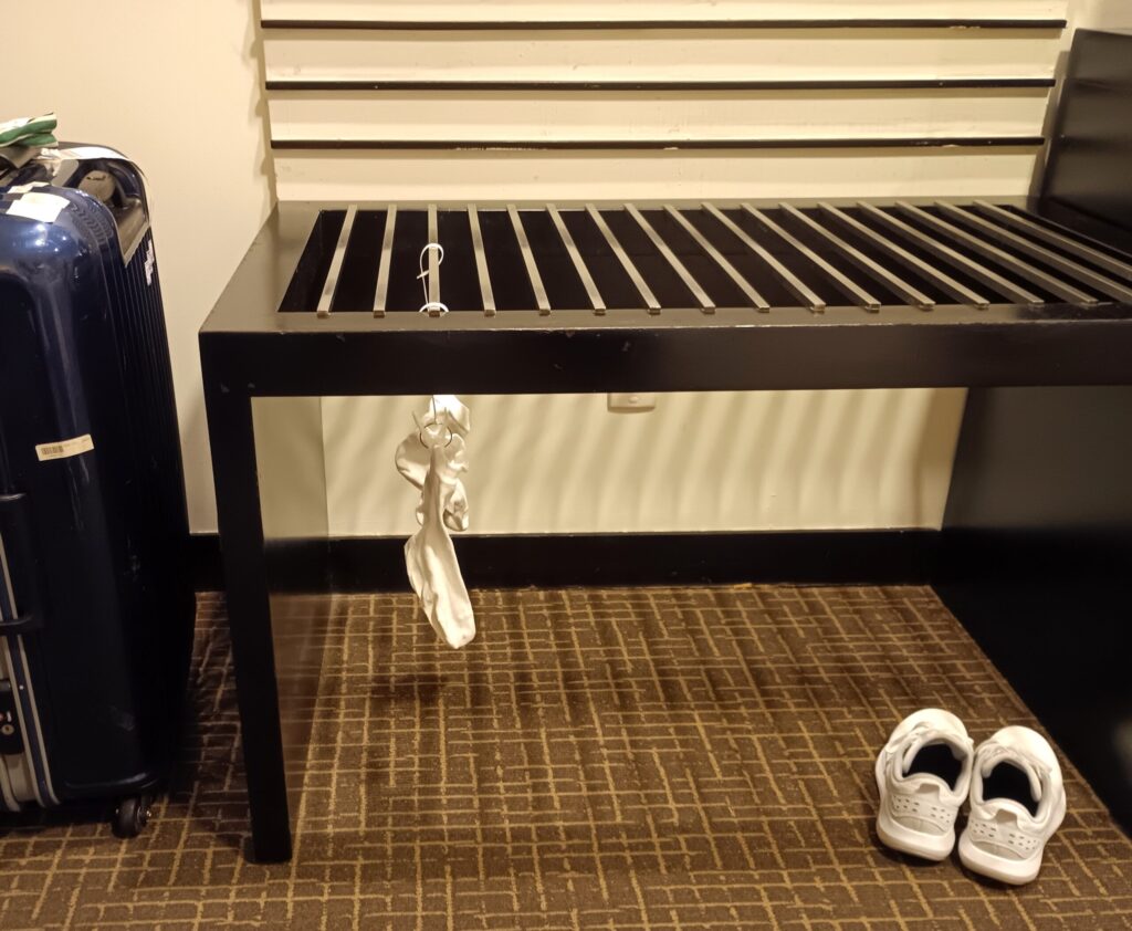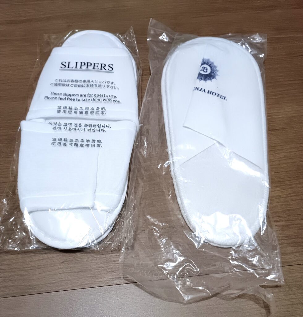 海外のホテルはSDGsなのか、使い古しのサンダルやスリッパが置いてあることが多いので、私は使い捨てスリッパを毎回持参しています(知らない人の履いたサンダルは抵抗があるので…水虫とか…)。