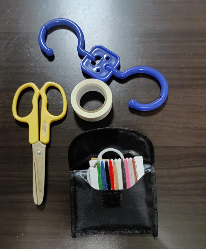 袋はいつだって必要になるし、海外のお菓子の袋はあかないからハサミがあると安心だし、食べ残したらテープで止めておけばいいし…なんて感じでなくてもどうにかなるけど、あると安心なのでいつも持参しています。