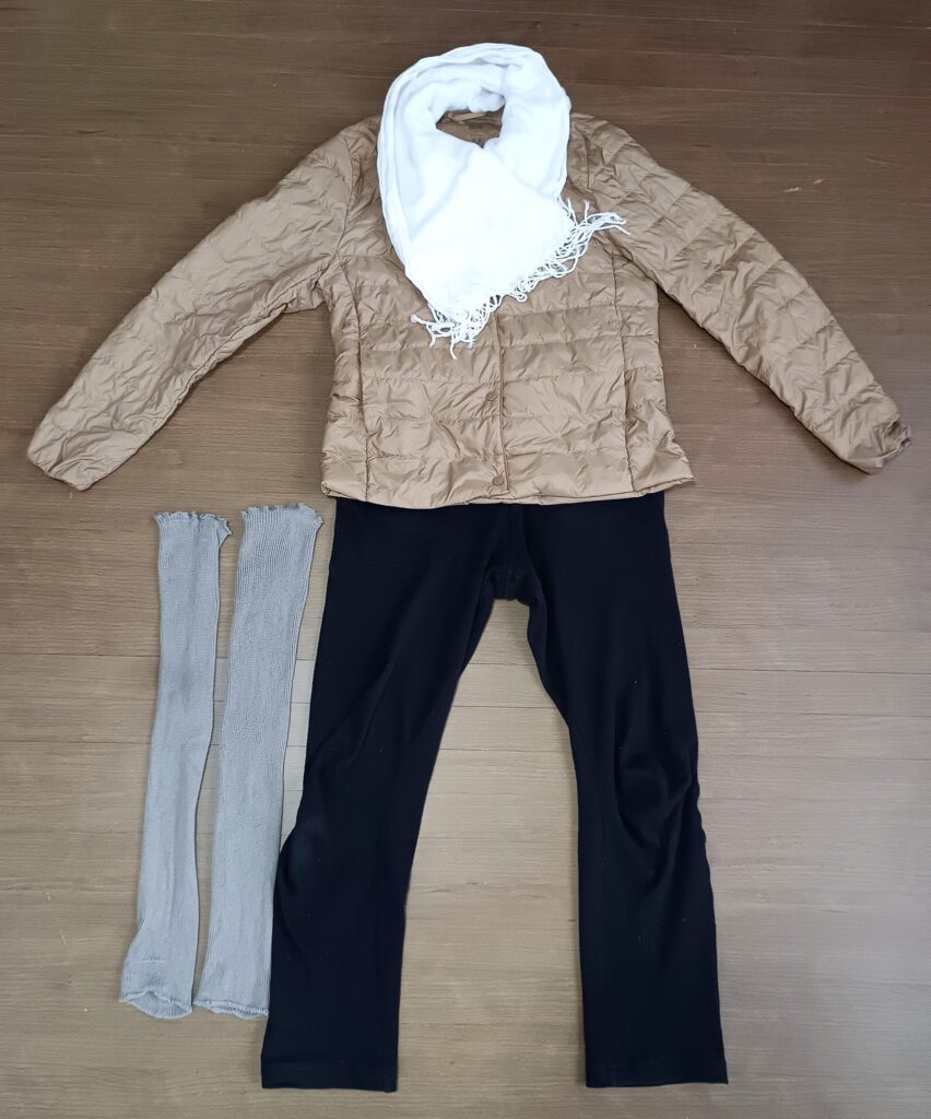 冬服はかさばるので、薄い羽織を何枚も重ねることと、機内でも暖かく休みやすい服装を選びました。ユニクロのウルトラライトダウンの下には長袖のTシャツとカーディガンを着ました。カーディガンなら、現地でも着回しができるのでお勧めです。