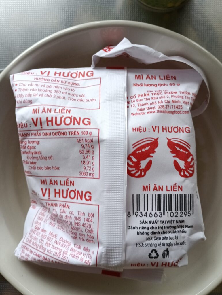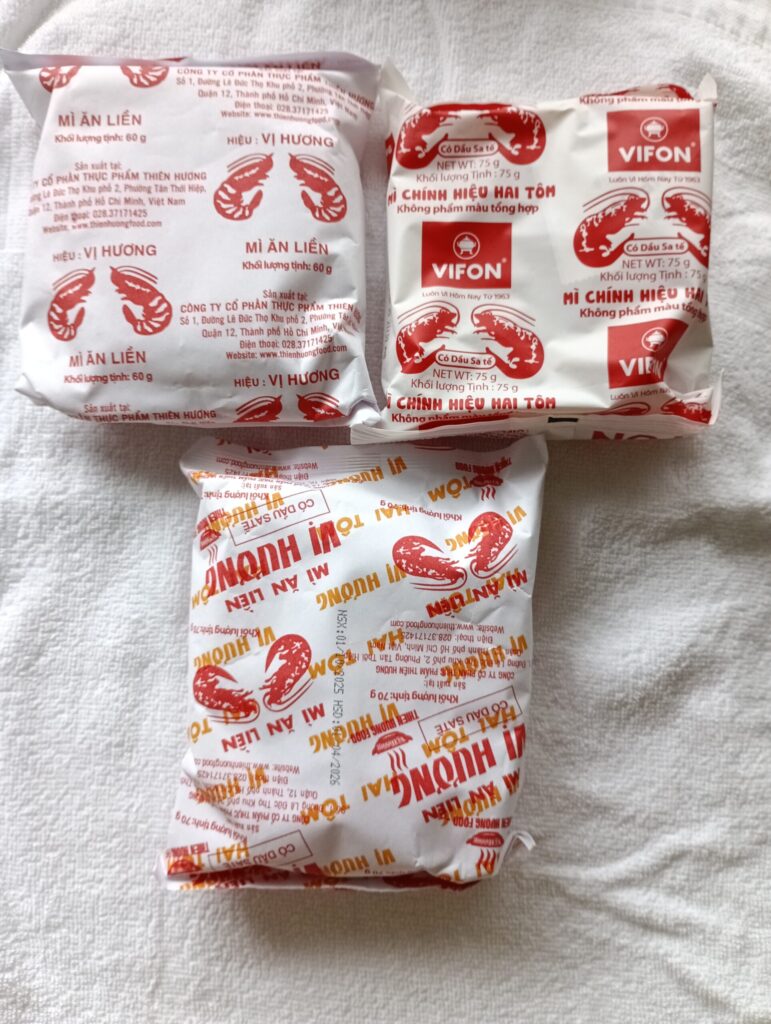 初めて買ったエビ?のインスタント麺。フォーに匹敵するかなを思い購入。30円くらいだったと思います。