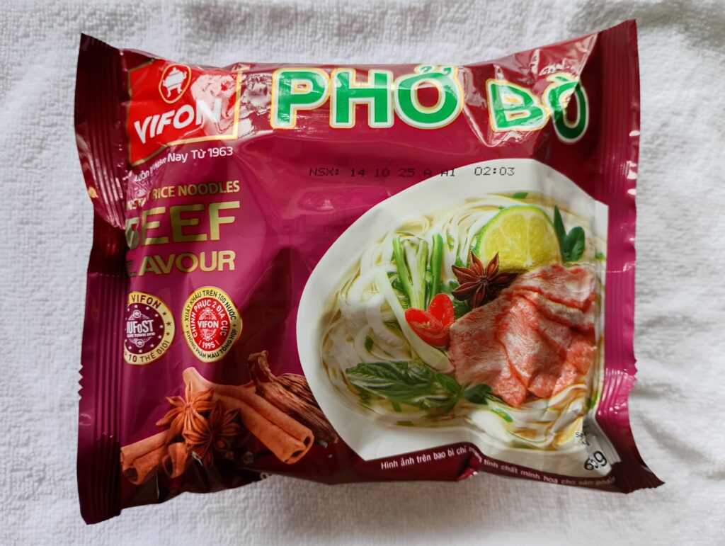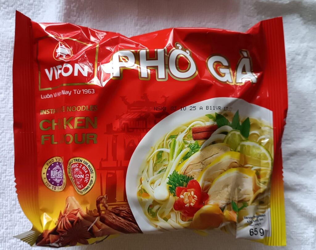私が大好きなVIFONのインスタントフォー。このメーカーが一番おいしい気がします。お湯をかけて3分でベトナムを感じられる最高の一品です。もちろん現地のフォーのほうが100万倍おいしいです!!