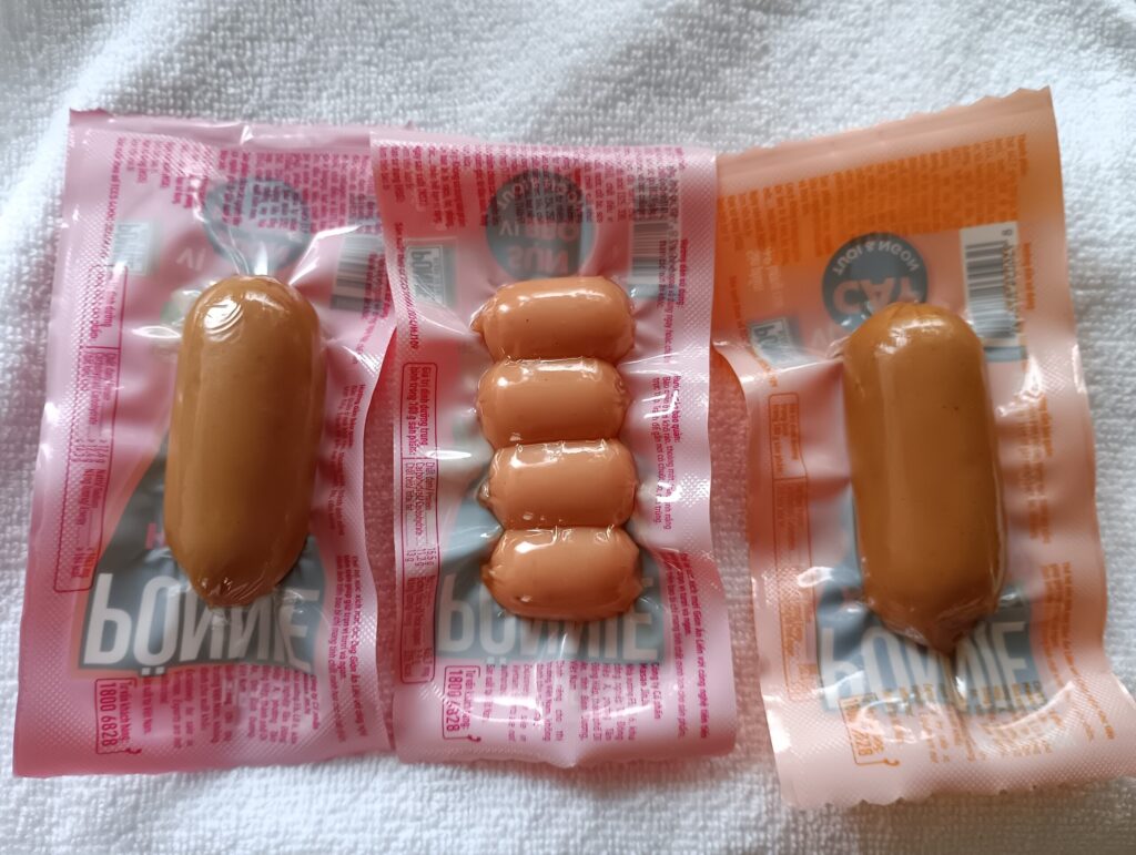 初めて買ってみた、ちっこいソーセージのおつまみ。40~60円くらいだったような気がします。別においしくはないけど、面白いし、ビールとセットでお友達にあげました。